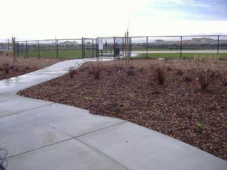 The dog park also has a one-of-a-kind dog drinking fountain, sturdy turf, plenty of seating for dog owners, and a decomposed granite area.