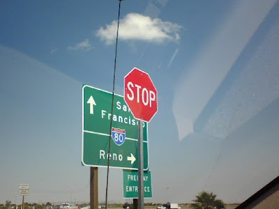 Stop signs were recently installed at the West El Camino exit off Interstate 80 — in both directions.