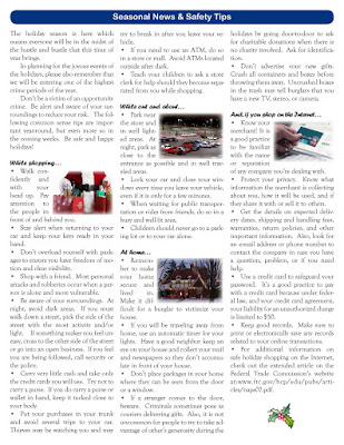 Each issue will include an update on the department, news from each of the area Police Captains who command a sub-station, seasonal prevention tips to keep safe, and feature articles. Click on the images for full view.
