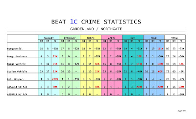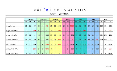 The stats also compare crime in Natomas neighborhoods January through June in 2007, 2008 and 2009.