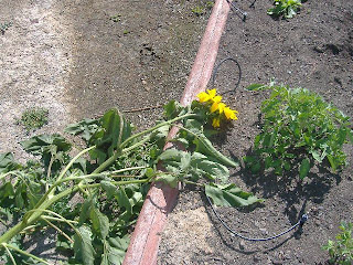 This little beauty was barely the height of the planter bed about three weeks ago. It is a stray seed from the many that were planted in the bed last year after our onion and garlic harvest. Sunflowers, like mint and dill, are basically weeds that cannot be destroyed.