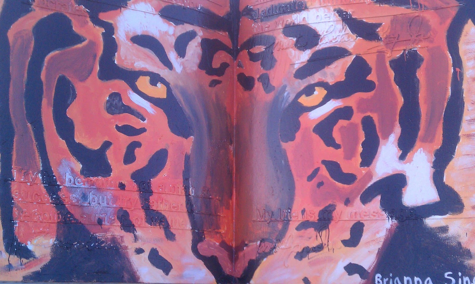 The “Authors of Our Own Destiny” interactive sculpture in Natomas now features a stunning mural of a tiger face signed by Brianna Singer.