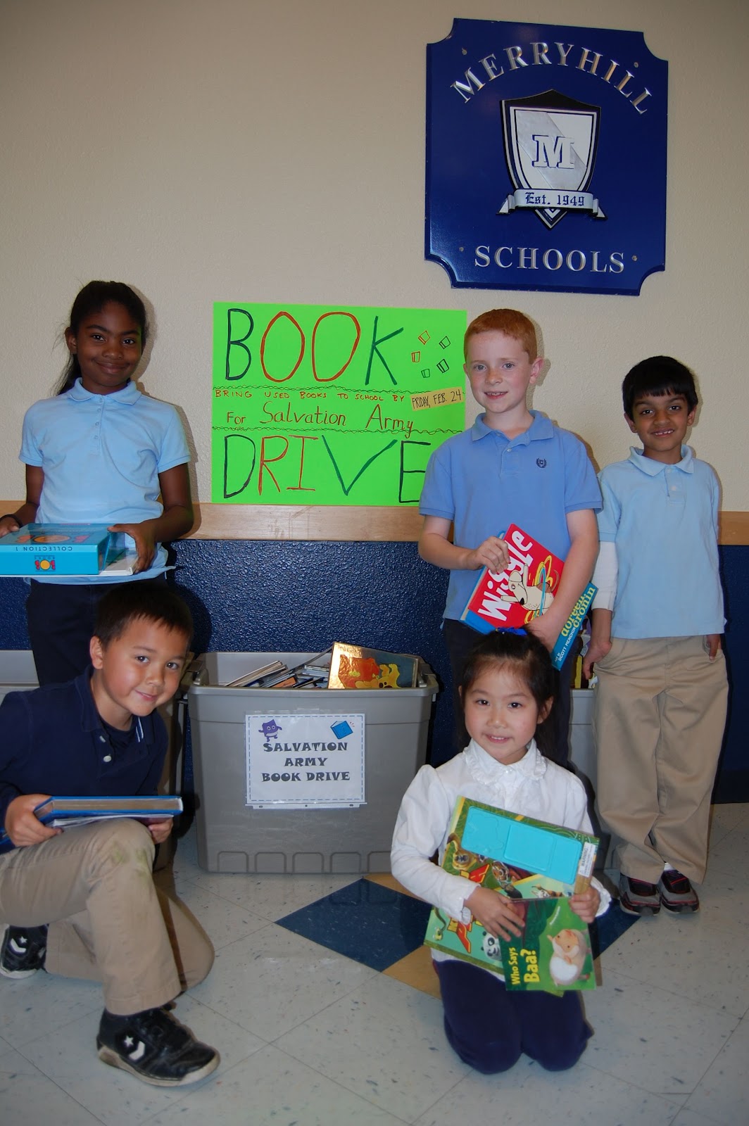 Students at Merryhill Millcreek this month collected several bins of used books to donate to the Salvation Army’s Early Care and Education Program in Oak Park.