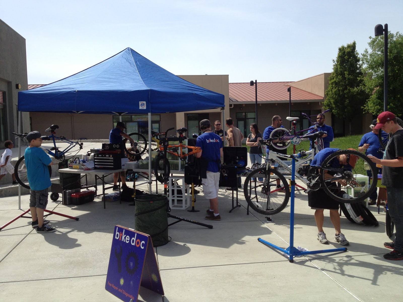 The North Natomas Transportation Management Association held a bike fix-it fair today, April 27 at Heron School. Bikes were serviced and repaired for free and bike helmets sold for only $5.