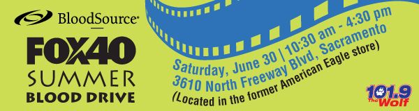 FOX40 meteorologists Kristina Werner and Darren Peck along with 101.9 the Wolf will kick off a summer of saving lives – and have a little fun, too, giving a free movie pass to all donors.